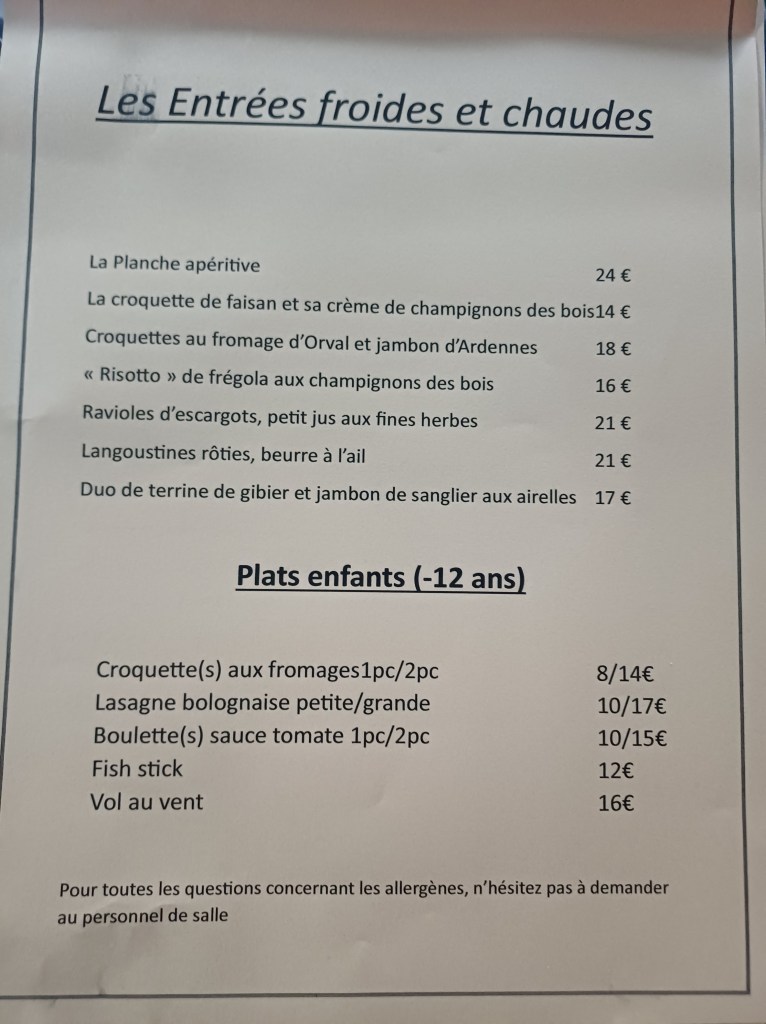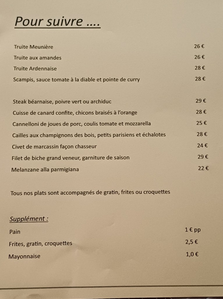 Notre tableau du moment, certains plats sont susceptibles de changer en fonction du marché…..