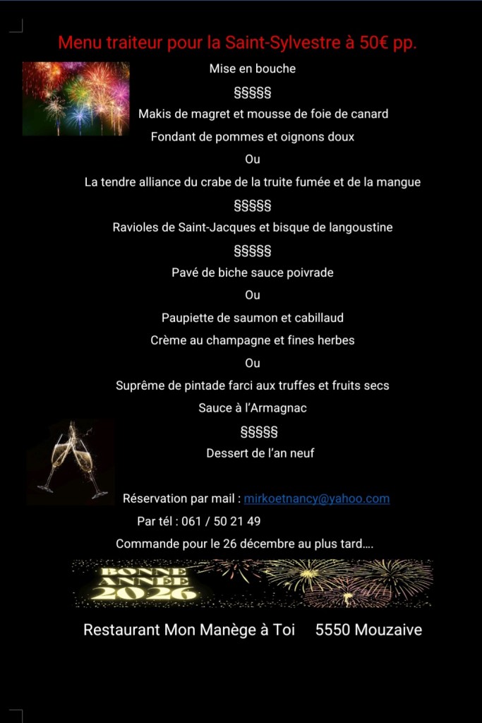 Notre menu traiteur pour la Saint sylvestre se trouve plus bas